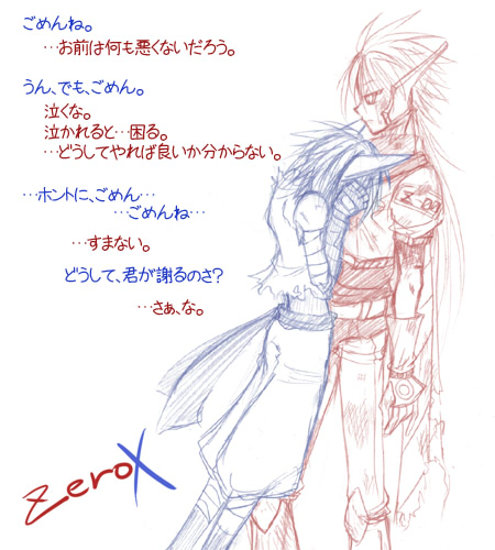 ひたすらエックスは謝るけれど、ゼロは泣いてるエックスの対応の仕方が分からなうくて内心あたふた。